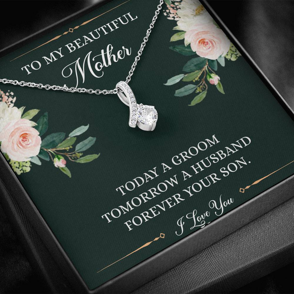 Mom of the Groom Gifts, Forever Your Son, Alluring Beauty Necklace For Women, Wedding Day Thank You Ideas From Groom