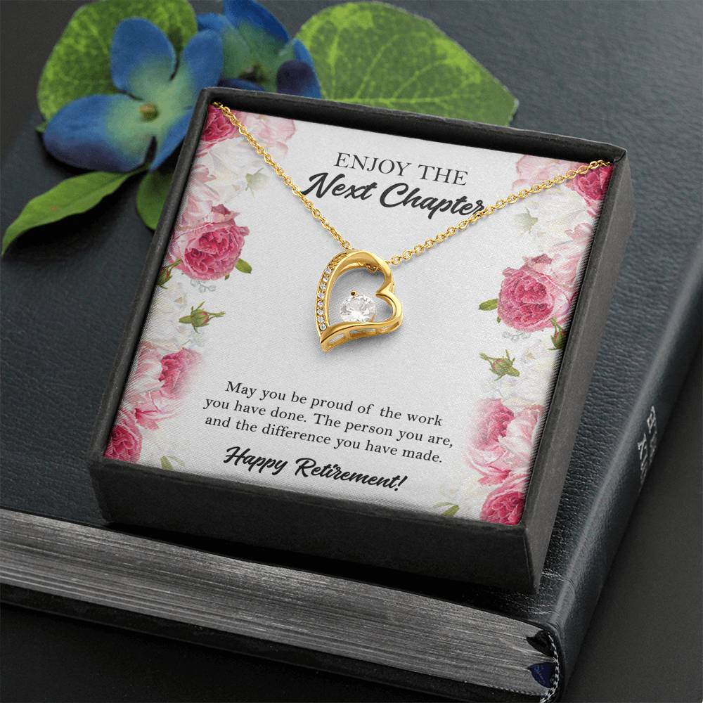 Retirement Gifts, Next Chapter, Happy Retirement Forever Love Heart Necklace For Women, Retirement Party Favor From Friends Coworkers