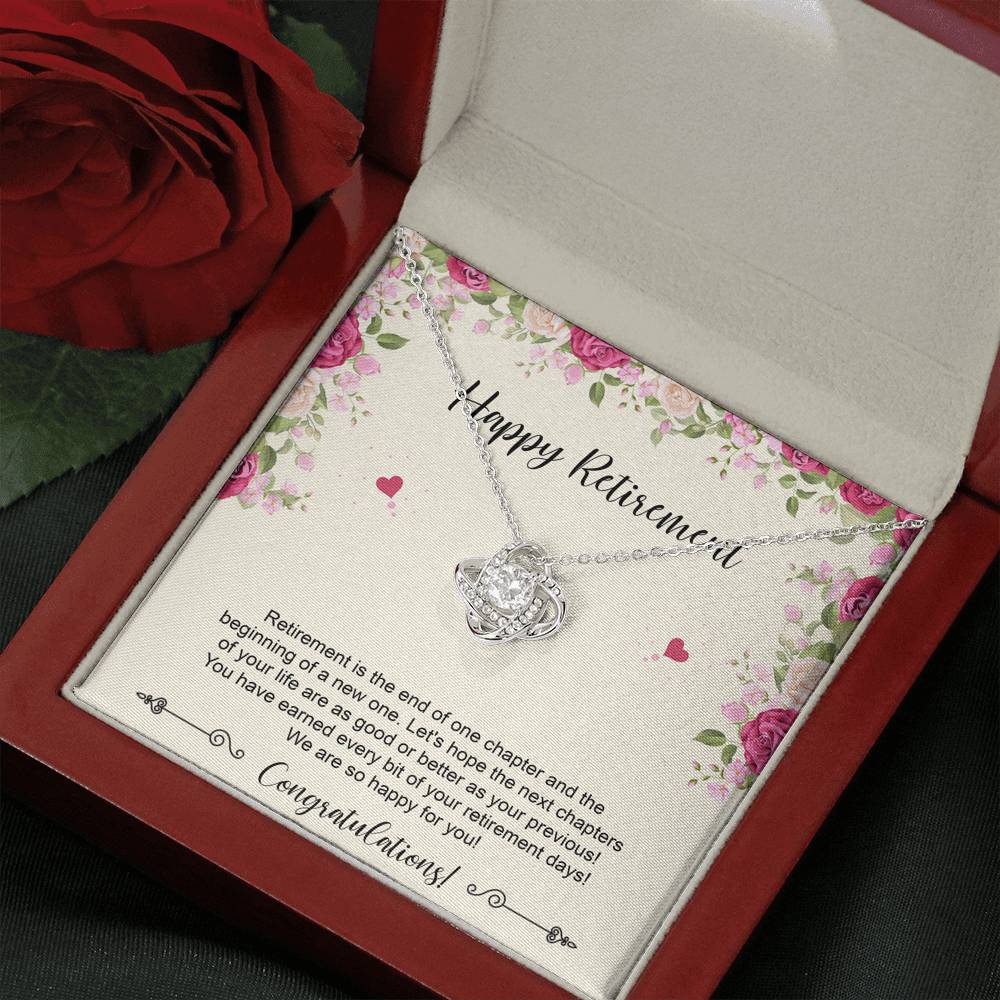 Retirement Gifts, Happy For You, Happy Retirement Love Knot Necklace For Women, Retirement Party Favor From Friends Coworkers