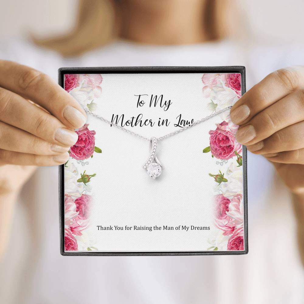 To My Mother-in-Law Gifts, Raising The Man Of My Dreams, Alluring Beauty Necklace For Women, Birthday Mothers Day Present From Daughter-in-law