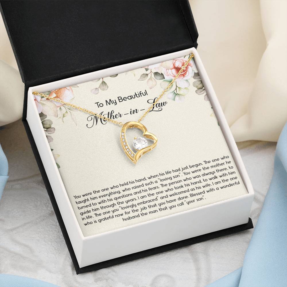 To My Mother-in-Law Gifts, The One Who Held His Hand, Forever Love Heart Necklace For Women, Birthday Mothers Day Present From Daughter-in-law
