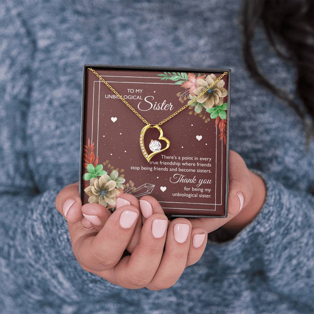 To My Unbiological Sister Gifts, Thank You, Forever Love Heart Necklace For Women, Birthday Present Idea From Sister-in-law
